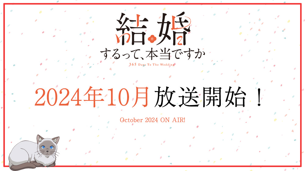 2024.07.05 NEWS TVアニメ「結婚するって、本当ですか」2024年10月放送開始! TVアニメ「結婚するって、本当ですか」の放送情報が解禁!2024年10月放送開始です!とっても素敵な物語になっておりますので、ぜひご覧ください!